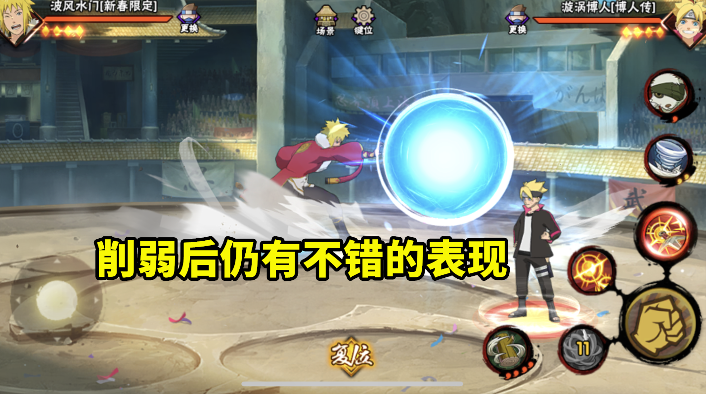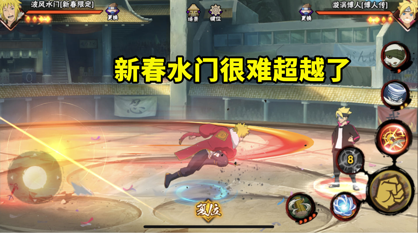 在三船之后上架的新春水门,算是一个整体比较均衡的忍者,至少没有发现类似三船那样过于无解的机制,把老水门的神速保留了下来,并且搭配了一个螺旋丸技能。除此之外,还设计了一个可以闪回原地以及捡取地面苦无的机制,很多人在刚上手新春水门的时候就会觉得太花里胡哨了,完全摸不着自己在哪里。但在熟悉了一段时间后就会发现这个忍者的强度上限很高,完全不亚于一些常规的高招A忍,结果也是被削弱了一波。