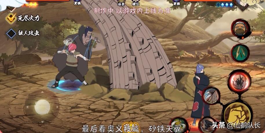 二技能属于晓创生蝎的核心,进可攻,退可守,像忍战勘九郎和晓蝎的技能融合加强,弥补了他们技能的不足,使晓创生蝎的技能更加完美,感觉会是一个真香忍者。而且他还可以抓霸体,奇拉比地位很尴尬,感觉目前的奇拉比登场,大多数忍者都可能会压制他(奇拉比:让我重做吧,尾兽化一点牌面没有,太难了)。