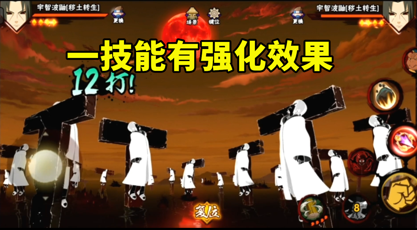 秽土鼬的能量条主要是跟一技能有关系,你可以认为就是套用了宇智波斑的能量条。释放一次一技能就会增加一格能量条,命中对方会额外增加一格,当能量条达到三格以后就可以释放强化版的月读。默认的月读效果就是把对方困在木头上进行攻击,强化后的月读效果会更酷炫,伤害也会更高,同时转场以及攻击的效果甚至是堪比一些忍者的奥义。