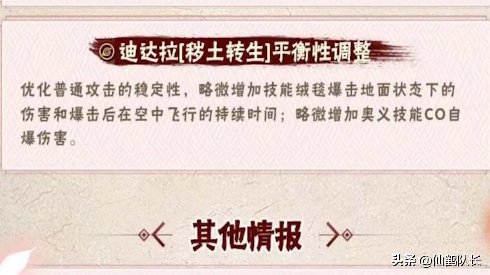这次的加强其实也不错,起码秽土迪达拉的连招稳定了,打伤害更快了,具体的还是需要等正式更新之后,来看看,说不定其他技能也得到优化了。就算目前强度达不到玩家的要求,之后还是会继续优化的,期待正式更新,变成“真香”忍者,强度不用像“木叶丸”,一线顶级强度就可以了。
