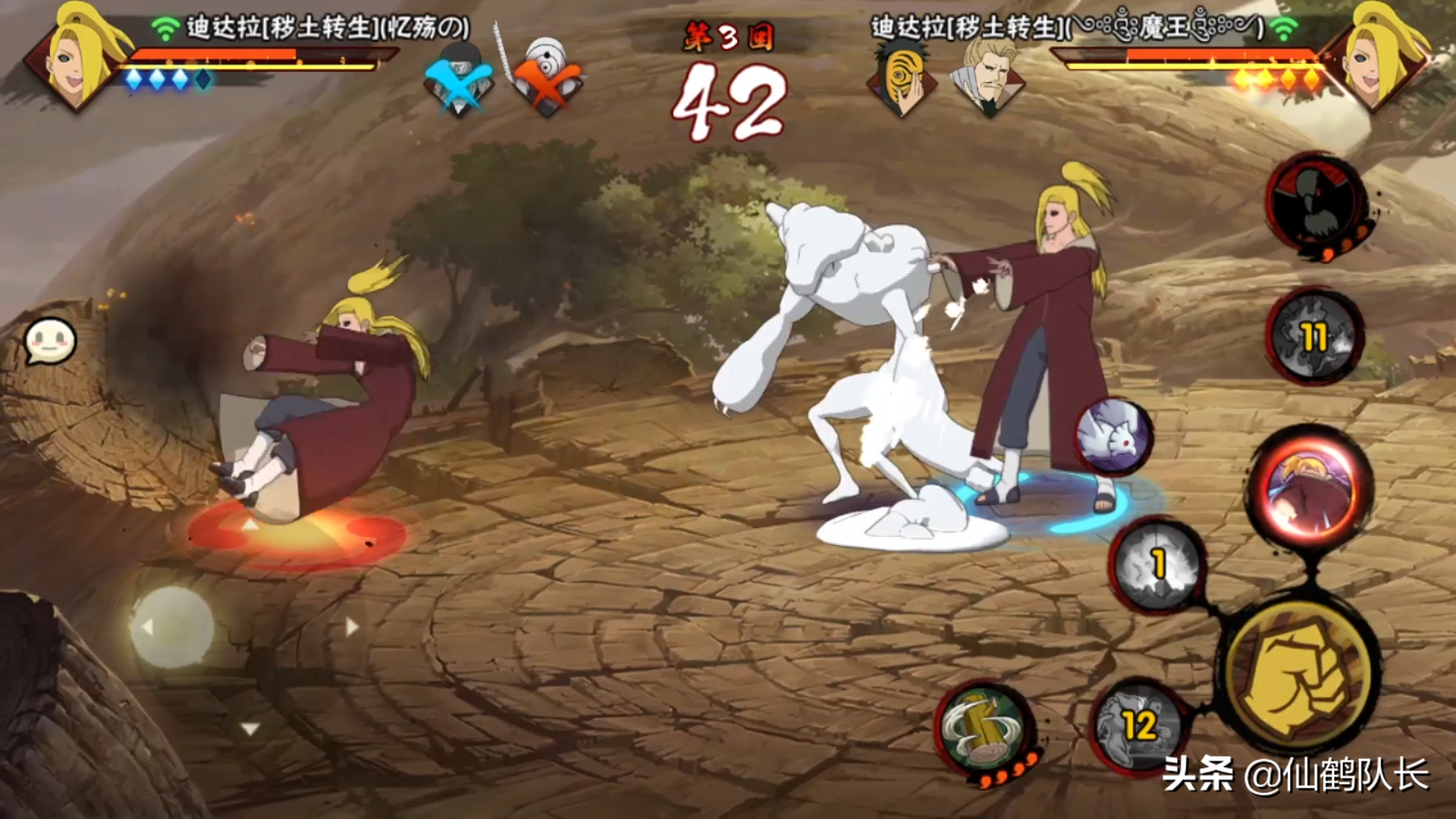其中最关键的,也是玩家最喜欢的技能“自爆”,上线之后就被削弱了,对手血量在40%以下,迪达拉的血量大概10%,这个技能触发的条件还是过于“苛刻”,直播的时候是对手50%以下,迪达拉30%以下,实战想打出来还是比较困难的,毕竟控制对手的血量容易,控制迪达拉的血量就很困难了,应该将自爆的触发条件优化一下。正常情况下,在决斗场中,很难触发这个技能,但是这个忍者最大的亮点就是“自爆”技能,这样他的定位就很尴尬。