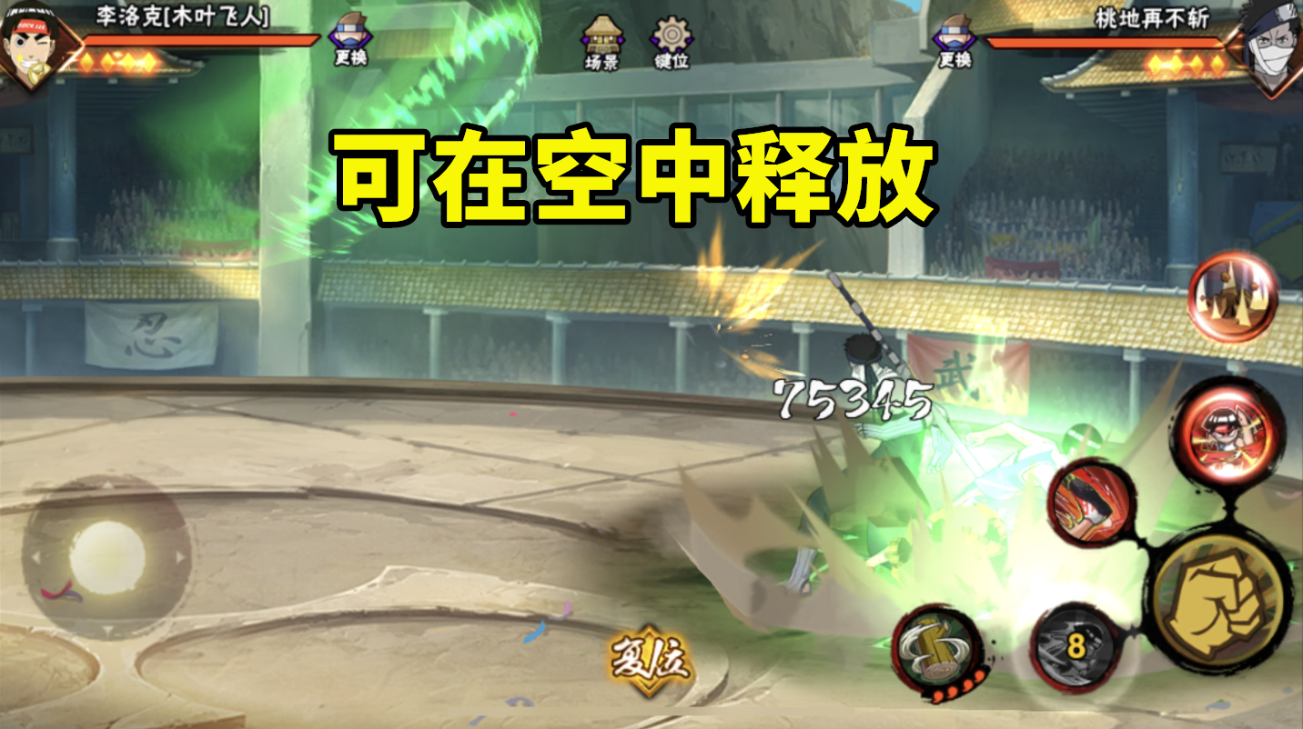 因为一技能或者组合技都是有空中连招的过程,为了让你快速地取消后摇,策划蛤蟆广也设置跟波风水门飞雷神一样的机制,可以在空中连招过程中点普攻快速闪现到地面。并且在技能后摇阶段都可以点普攻进行一个翻滚动作,这个在实战中就会让木叶飞人小李更加灵活。两个技能和组合技都能在空中释放,可以方便你在连招过程中打出更秀的操作。