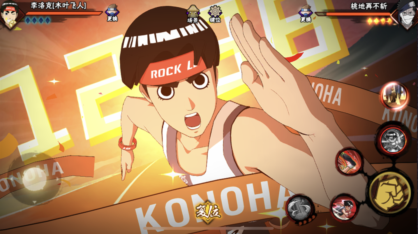 说完了这个忍者上架后的获取方式以外,我们再来说一下上手后的感觉以及当初技能爆料中不是太清晰的地方。首先就是打击感和整体的效果很不错,毕竟很多玩家当初看到技能爆料的时候都以为会是付费忍者,主要还是比较认可他的整体表现。一技能突进过程很快,X轴距离也比较远,但不具备扫地效果,中间那一段看起来好像消失了一样,但经过实测是没有无敌帧的。并且一技能冲出去的那个姿势也非常熟悉,很像忍界大战凯青春哥的样子,同时在连招和技能释放过程中,你会感受到一股很熟悉的青春哥味道。