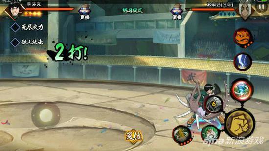 再将敌人打飞进行无线连招之前我们可以用木叶旋风这个技能接近敌人或者将敌人击飞来为我们的无限连招创造使用条件,只要敌人处于击飞状态,我们就可以使用无限连招。
