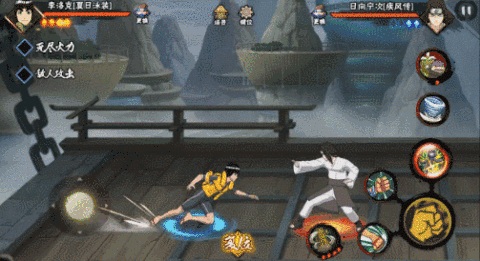 接着是奥义——夏日青春,蓄力后向前奔跑,快速围绕目标旋转然后将敌人提向天空并进行连续的攻击,而且这个奥义可以衔接技能,光是这点就让这个忍者强度提升了一个档次~