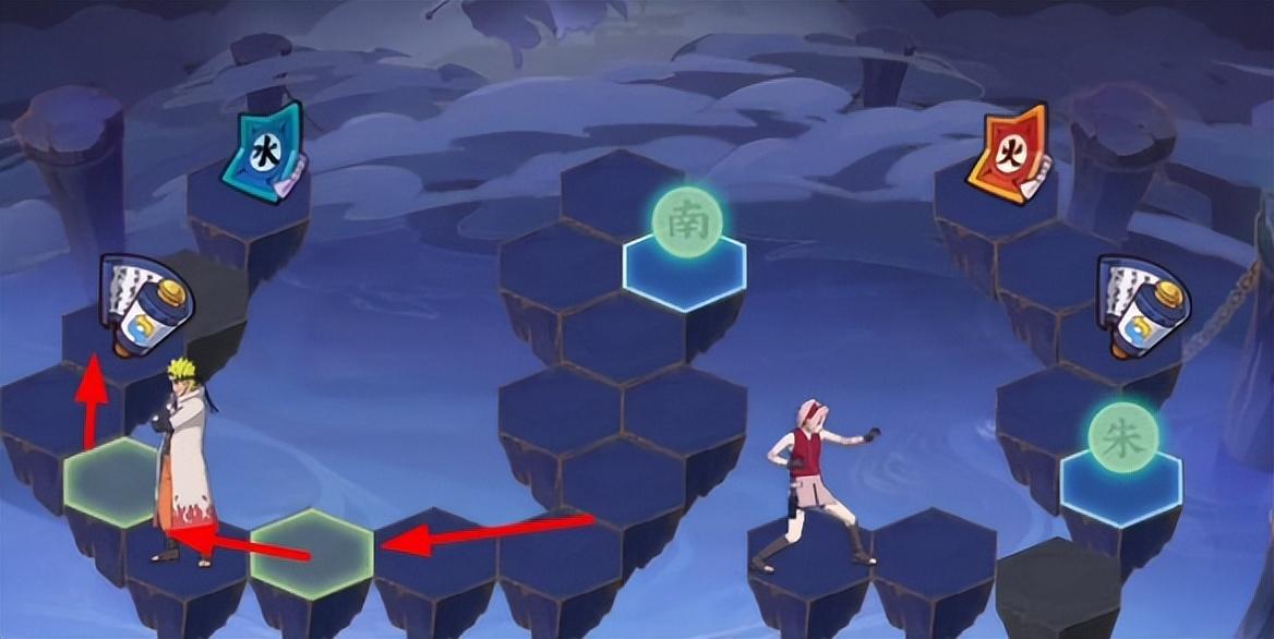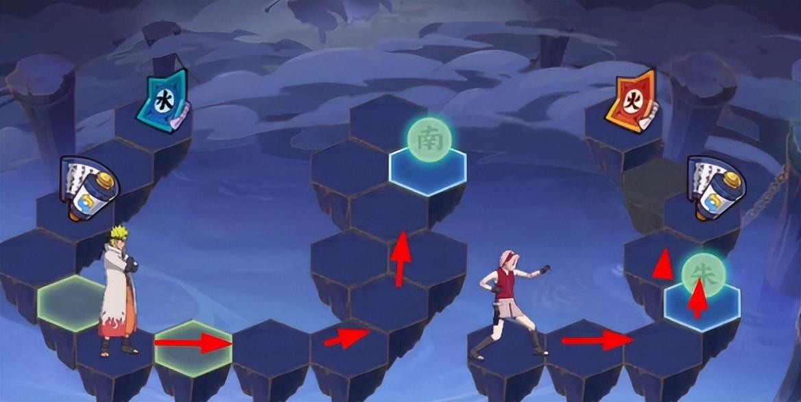 5、然后将小樱、鸣人按照下图方式移动到终点。