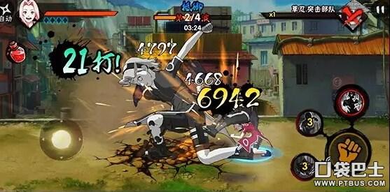 无Cd。小樱的普攻每一下都能造成相当高的硬直,使敌人动弹不得,刷怪用普攻还是相当不错的选择。最后一下踢飞敌人,也可以有更多的时间准备衔接其他技能。