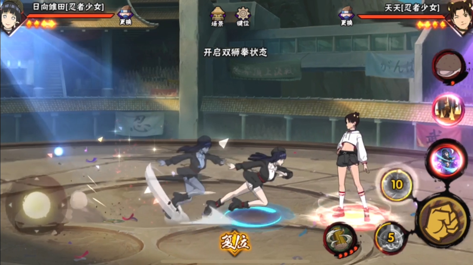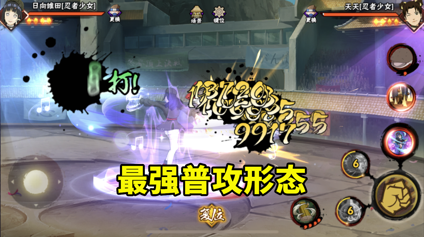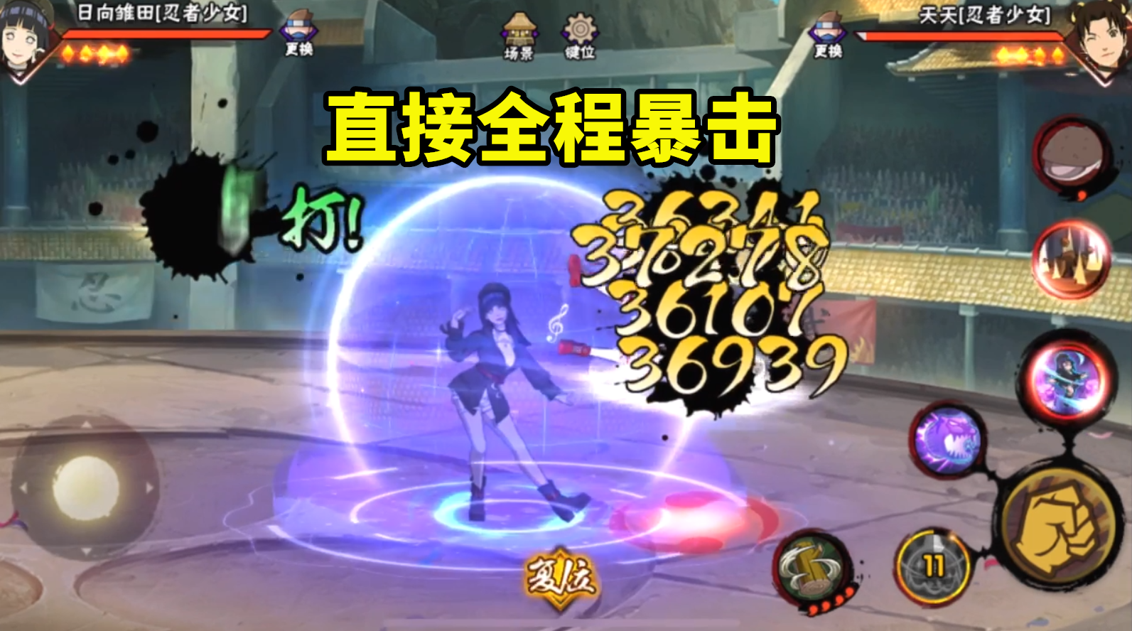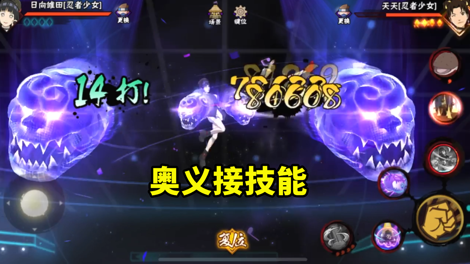 只不过女团雏田的一技能后摇非常大,正常情况下你必须要跳完舞以后才可以进行其他的操作,再加上这个技能本身的范围也比较有限,所以不太适合用来起手。唯一一个可以取消一技能后摇的方式就是在释放阶段点击二技能,这样就可以快速取消后摇然后进行二技能的操作。二技能的效果是一个快速突进抓取,可以把霸体忍者打出击飞的效果,并且在刚释放的阶段可以利用摇杆来攻击小幅度的Y轴移动,你可以理解为就是秽土水门的螺旋丸,在刚释放的时候有一个转身的效果。