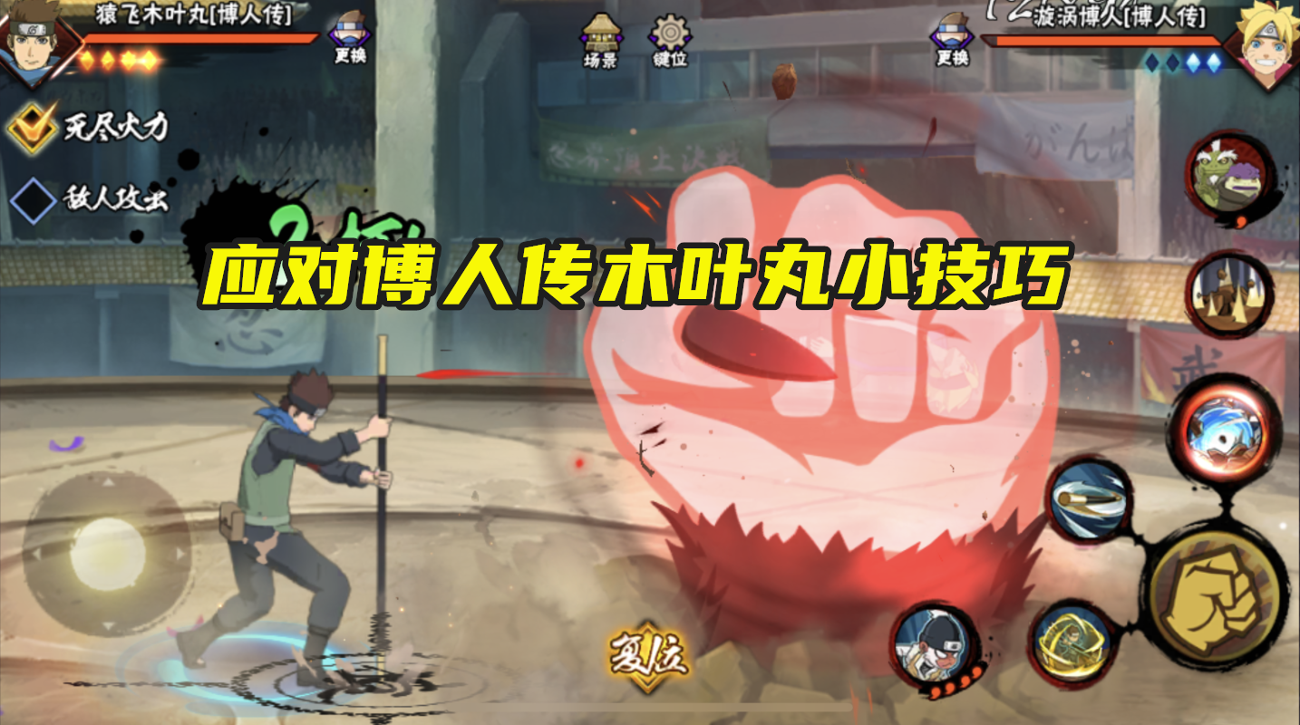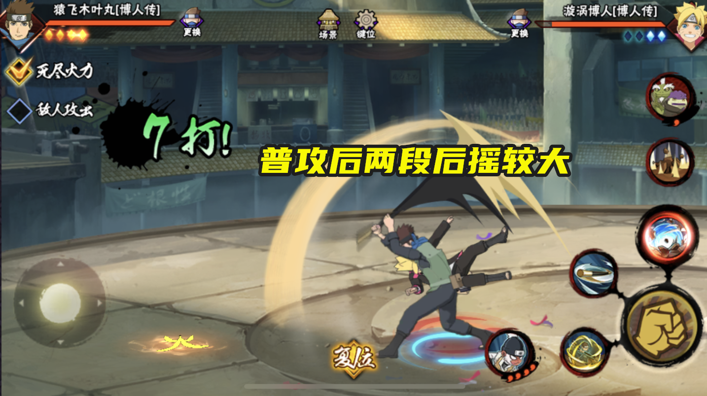 再来说一下博人传木叶丸的后摇问题,默认状态下的普攻都是可以通过秘卷或者技能快速取消后摇的,但是,三方封印和螺旋丸的后摇都很大,这也算是在一定程度上限制了他的强度上限。而在切换到拿着棍子的状态后,博人传木叶丸的普攻就会有很大的后摇,主要是在后面两段跳起来攻击的时候,这两段的效果是没办法取消后摇的,所以,如果你碰到对方用这个状态下的普攻来进行连招,你就可以抓住他后面两段后摇较大的时候替身抓他,这样就会非常有效果。