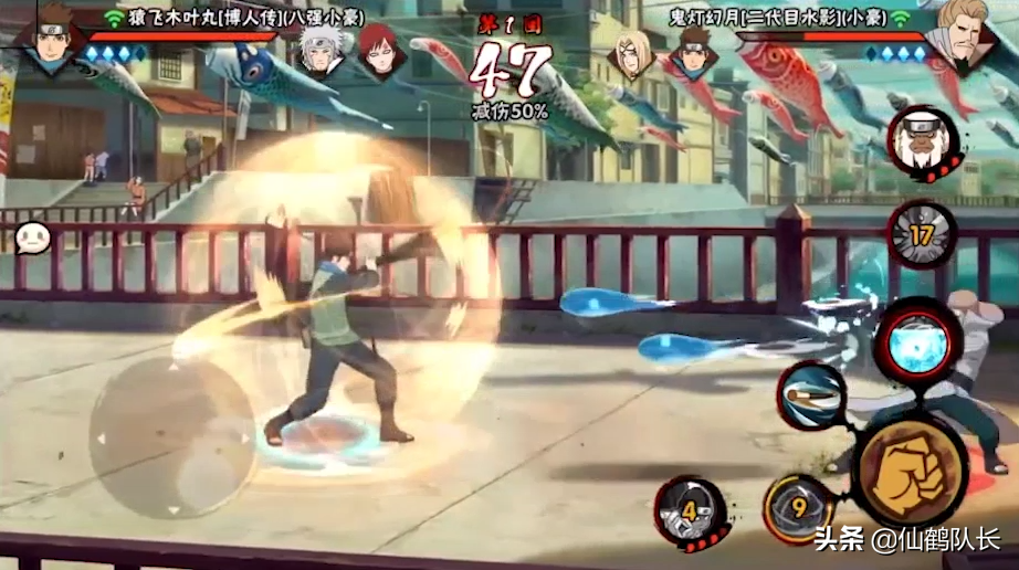 大招:手里剑+分身+螺旋丸,最后还是螺旋丸,比较中规中矩,无法接技能。