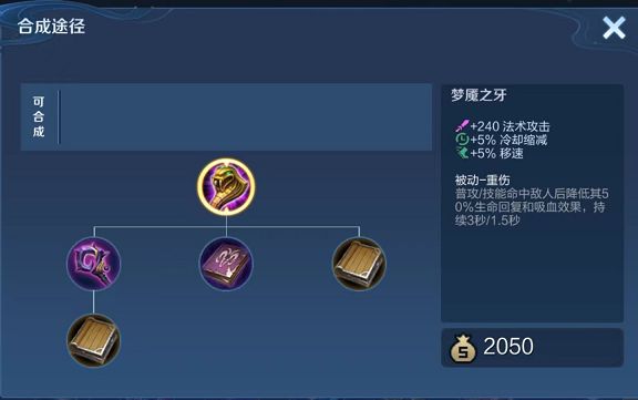 如果你玩的是周瑜、王昭君、小乔等以AOE伤害为主的法师,也可以出个梦魇之牙来克制对手的高回复阵容。