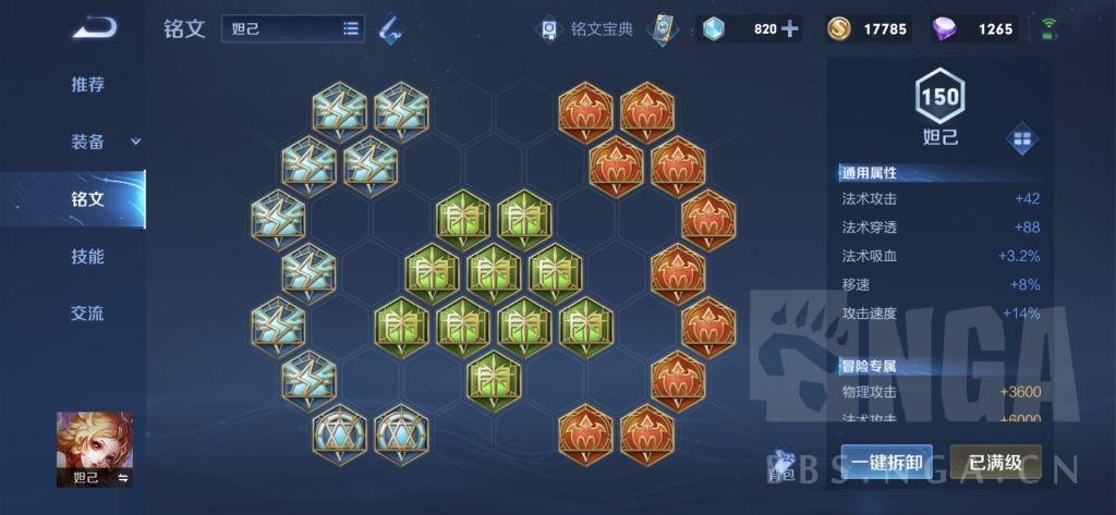 铭文:梦魇*10,狩猎*10,献祭*10,加伤害加移速减cd(大部分法师通用)。我们可以看到右边法术穿透这一栏写着+88,所以主播口中说道“88穿”指的就是这个了。