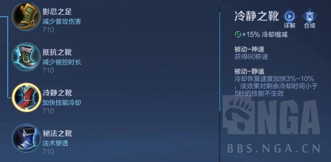 只爱在中路清线推塔偷三猪的话,可以考虑冷静靴。冷静靴是减技能CD的,技能好的越快能秒的人越多都懂得吧。