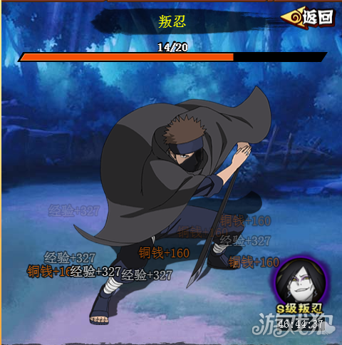 这里就是缉拿叛忍的界面,点击叛忍的身体进行攻击获得经验与铜钱。用力攻击叛忍吧。