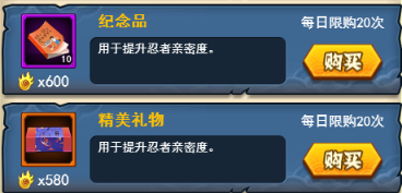 或者活动副本据点探索也是可以爆出亲密度的材料的。简单的来说就是想要短时间提升亲密度的就氪金每日限购20次买掉。再据点探索刷完次数上限,再用忍币提升。