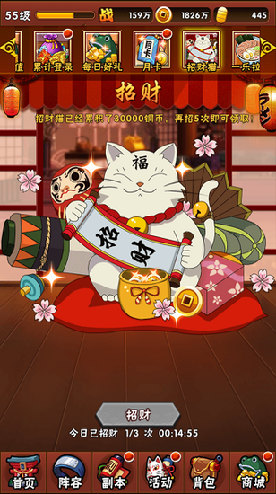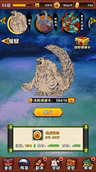 如果你是充过钱的玩家,每日的VIP礼包会赠送一定数量的铜币,随着VIP等级提升,每日礼包中可以获得的铜币也会增加。另外游戏中的招财猫每日可以免费招财3次,这是免费获得铜币的重要途径!强烈建议一定要招满次数。每周一、三、五、日开启的尾兽来袭中也可以产出大量铜币,强烈建议玩家把缉捕令留到出铜币本的时候用。