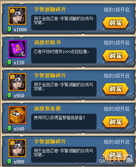 这个地方是商城使用贡献兑换的东西。宇智波鼬的碎片可以从这里获得。一定的碎片合成角色宇智波鼬。