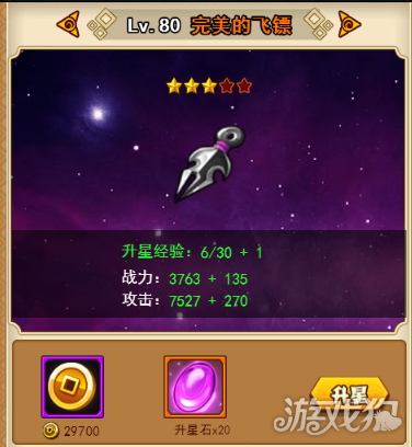 这里是升星界面,可以看见升星的消耗,以及升星下一阶段会增加的战斗力和攻击。