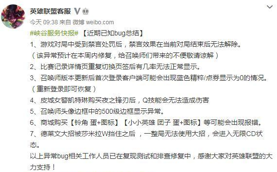 英雄联盟bug反馈最新资讯(LOL手游新版本出现了哪些BUG)