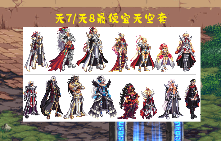 然后再说一下“最便宜的天空”,依旧是4个老面孔时装:天7、天8、天11、以及天12,售价都在3E金币左右。