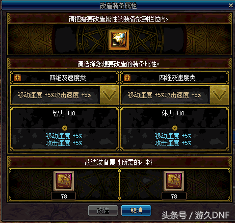 42全属强,44全减抗,18技能攻击力,500智,20%减魔防