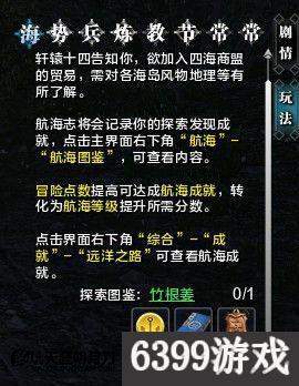 航海图鉴是海洋三大势力中的绝智轩委托给玩家的任务,在海上冒险时不要忘记随手记录下有趣的亊物(可以去探索海岛)