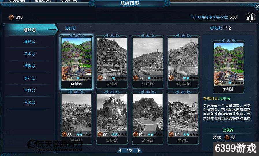 到达泉州港。对话NPC触发航海图鉴玩法。