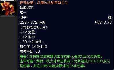 炎魔之锤,是魔兽世界60年代第一批橙色武器,在任何时候都是极具纪念意义的一把武器,不管外观还是属性上(当然还是外观)。不过在当时的战士,圣骑士,萨满都会想尽办法去做出来一个,毕竟对于提升DPS那是很客观的。不过这个武器对比同一时期的风剑,就被压下去一截,从他高昂的造价来说,已经是很多人弄不到的一把神兵。