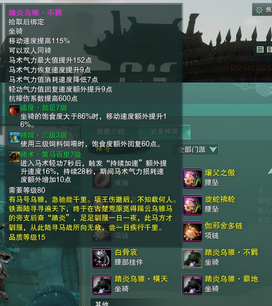 因为它的掉落非常之多,6%跑速的踏炎马具,家具,挂件,玄晶,小铁,玄晶,最重要的是陆寻掉的马,不羁。