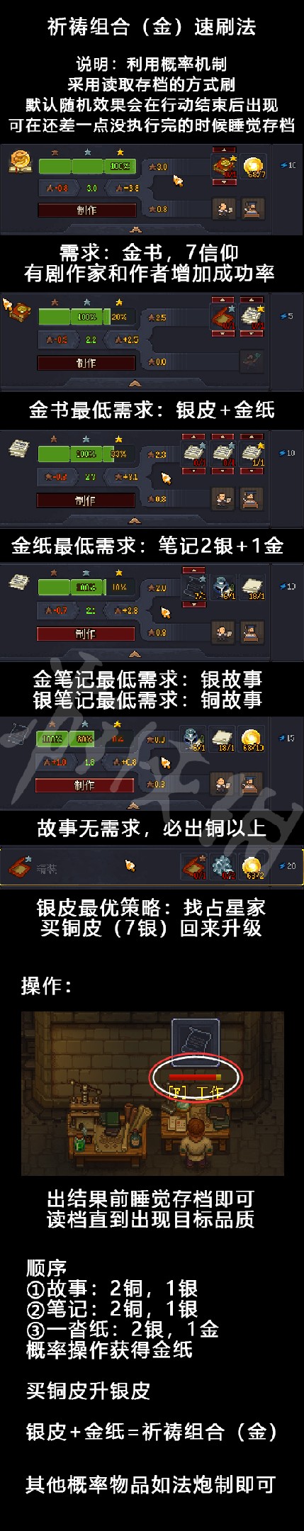 祈祷组合当有了作者和剧作家技能后可以很快出,利用S&L大法靠概率来获得目标物。