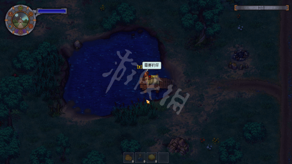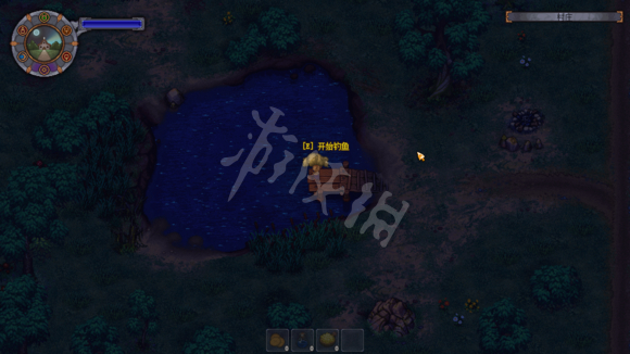 扛着进入村庄(还恰巧撞到巡逻的喂兵,吓死我了。然后他竟然马上转过头去喊了一句“村庄安全了”???黑人问号脸???),找到村庄中能钓鱼的水池,上到那个小木桥上。