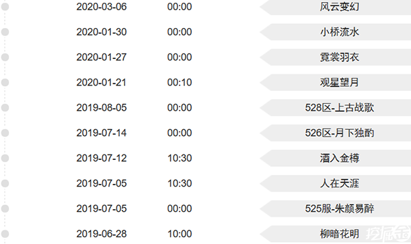| 区服名称 | 运行系统 | 运营平台 | 开服时间 |