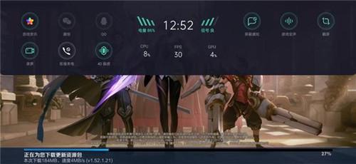 游戏对局中,从左上角或是右上角下拉即可呼出游戏助手菜单,菜单中集成了小窗消息回复、截屏、免打扰等多项功能按键。同时,它还能看到目前手机的电量情况、网络情况、CPU资源占用情况、GPU资源占用情况等核心参数。