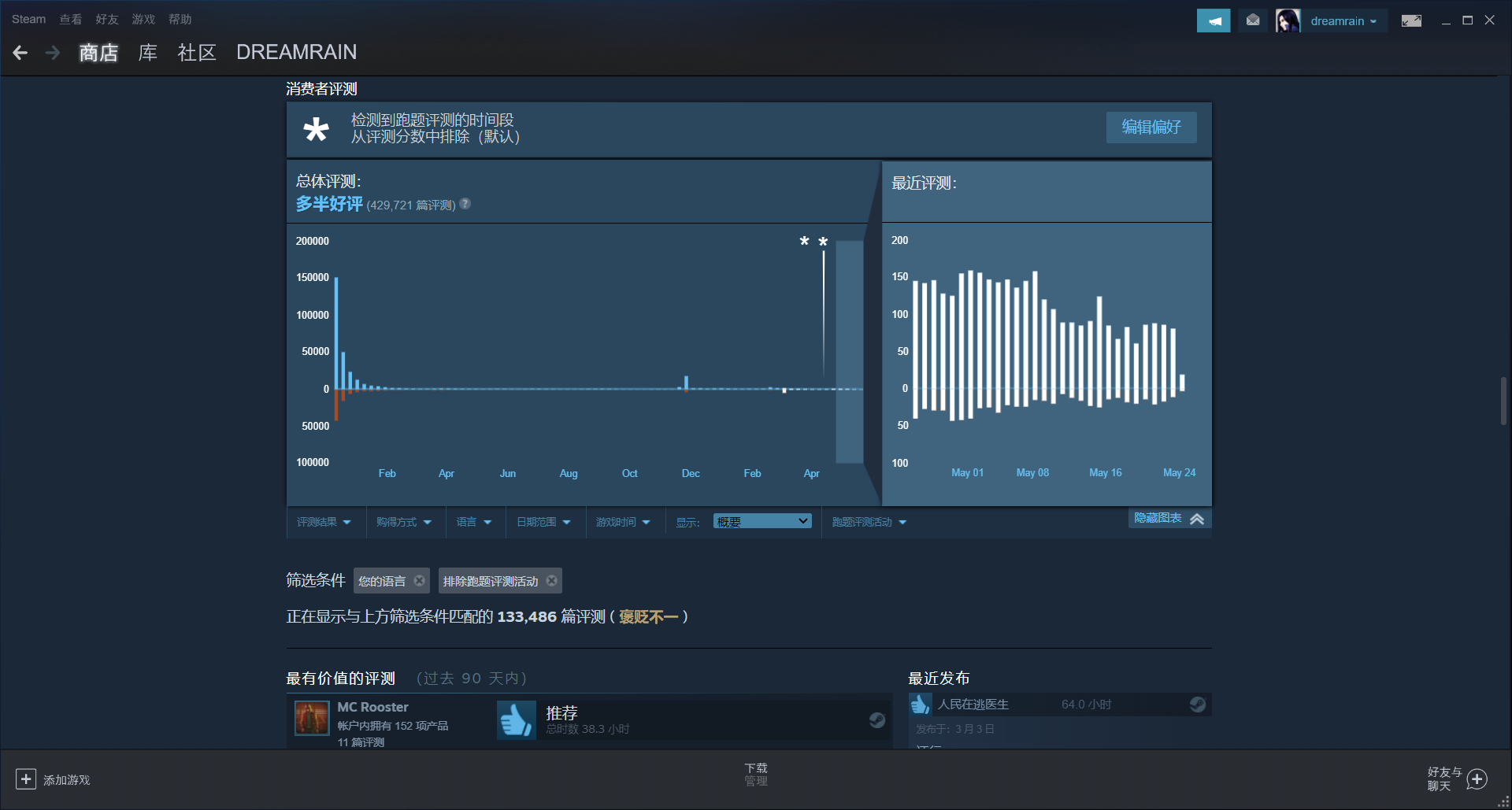 Steam平台作为影响力足够大且手中足够多的游戏平台,可以说是游戏平台建设的标杆。从Steam的社区功能到运营中均可以发现,基于玩家想要了解游戏的需求,游戏评价功能不仅是平台的重要基础功能,更是社区内容的重要组成。原因正是基于用户行为需求的基础。