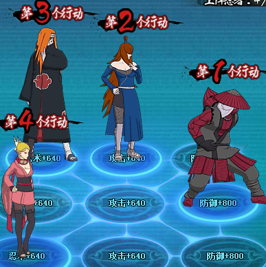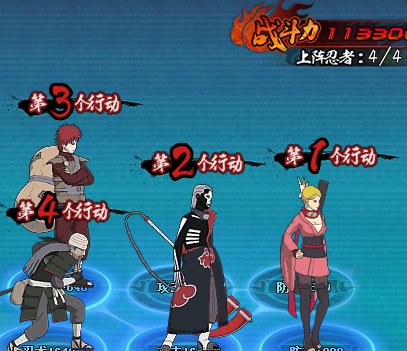 第一回合:饿鬼道奥义风主,这回合硬吃爆刀的奥义(仙鸣分身不能死,不然撤退),仙鸣一套连击定身住水主(失败撤退),对方西瓜受我爱罗普攻之后会奥义(风主被连击,没关系),风主每回合都会普攻2次,召唤分身(对付满月的随机攻击很有用,减少小队忍者不必要的普攻伤害)
