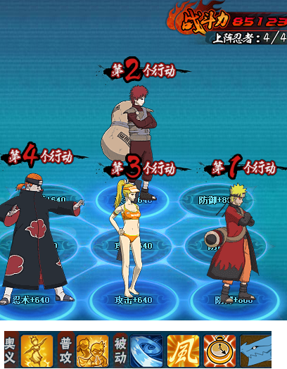 阵容和第一关一样。这里风主的超级目盲依旧实用,必须目盲到四代雷影,其他随意