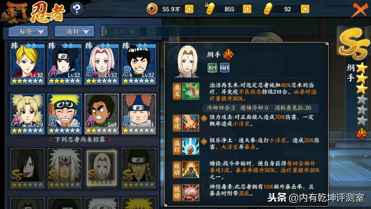 刷完生存之后的波之国积分如果想换忍者,就换先换凯和君麻吕,此外B级忍者也值得关注,小李的追打可以追打两次,雏田的封穴虽然是几率触发但是几率并不低,丁次治疗后普攻可以多次触发。还有一位SS级忍者就是纲手,具体情况需要测试之后再跟大家讨论了,改动较大。