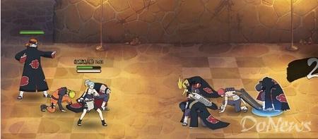 第一回合:修罗手动打断迪达拉,鸣人攻击一套连击控住蝎,等鬼鲛出手时饿鬼给修罗扔盾。