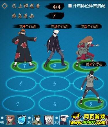 第二关忍战佐井普攻过给盾,开奥义给蝎回血,其余随意过,要点是下回合开始保留小猪奥义和雷凯1回合或无CD。狮子能普攻迪达拉,想过的快点都打蝎也行。