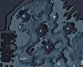 接下来前往地图(3)关闭第二座神殿,此时基地收集到一定的资源,建造雷兽洞穴和螺旋塔,产出大批的雷兽和飞螳补充到队伍,接着前往地图(4、5)关闭神殿,顺路摧毁地图(B、C)的水晶。最后纠集全部兵力,一鼓作气攻入地图(6)的最后一座神殿,这里会有三只混源体同时出现,注意它们的血量,同时歼灭两只,可达成成就“魅影杀机”。