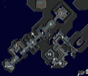 舰桥开始爆炸,开始5分钟的倒计时,率队迅速往前消灭敌兵,利维坦会增援一些异化虫过来。摧毁地图(8)的大门,沿着走廊一路扫荡,进到地图(B)的房间拿另一份机密文件。然后消灭地图(9)处的敌兵,攻破大门进到囚牢(10)救到雷诺。