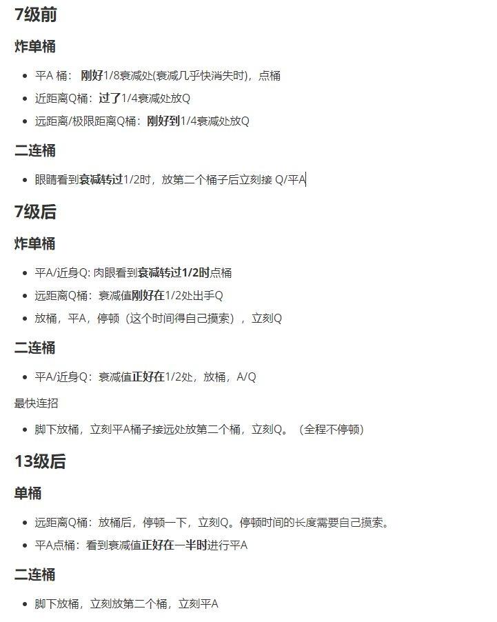 我把点桶时机分为两类,一类是看到衰减值正好处于标记处,比如看到衰减值此时出现在1/2处,这时你再进行点桶的操作(比如q桶或者a桶),不需要预判衰减值,重点是看到了衰减值处于那个位置后,再进行点桶的操作。