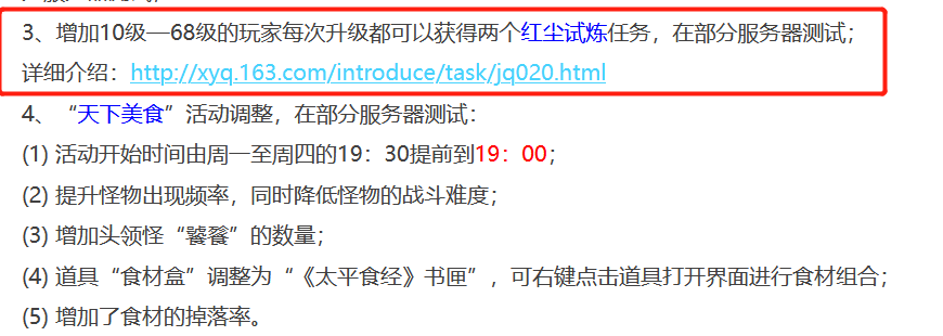 11月8日,69级以下的角色,增加了红尘试炼任务。每升一级都有两个。