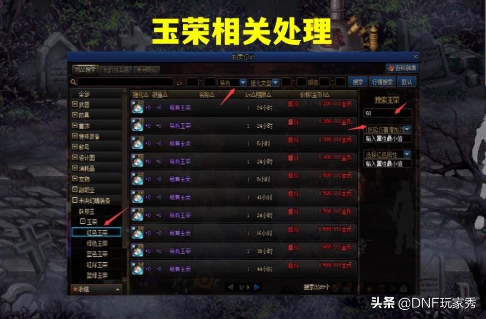 在起步阶段,可以用金币,在拍卖购买8个100数值左右的玉荣,给大号配备,如果大号伤害足,可无视玉荣词条,如果角色伤害不足,强烈建议红色玉荣买技能攻击力,虽然有点贵,但时间就是金钱,打得快才舒服,而且,自己不用了的玉荣,可再封丢拍卖。
