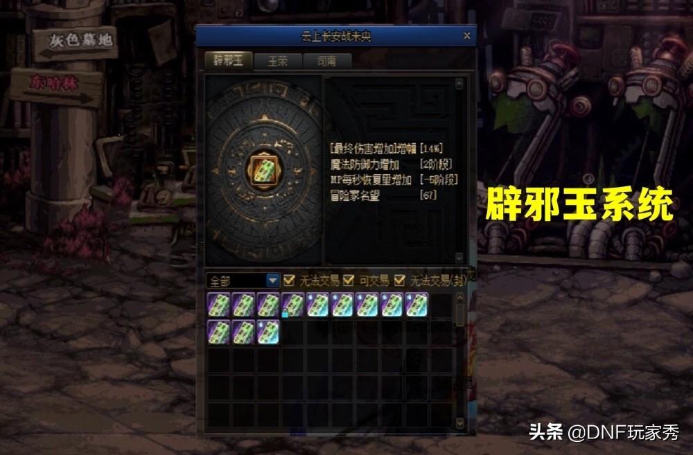 产出的辟邪玉,根据个人需求,可交易的全部丢拍卖,不懂价格的,可以搜拍卖同类道具;不可交易,看词条,极品词条拿来“套玉”,垃圾词条拿来洗司南,特别提醒,强烈建议不要分解辟邪玉,后期洗票消耗巨大。