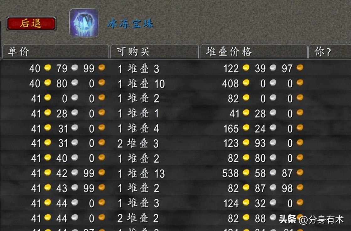 第四个重大的改变是,拍卖行的一些物资明显变少了,物价基本变化不大,但是部分商品的物价反而提升了,比如说冰冻宝珠,我们区已经40多金了,有时候这个东西甚至会断货,可能是因为现在打英雄副本的人太少了,导致这个东西严重不足。