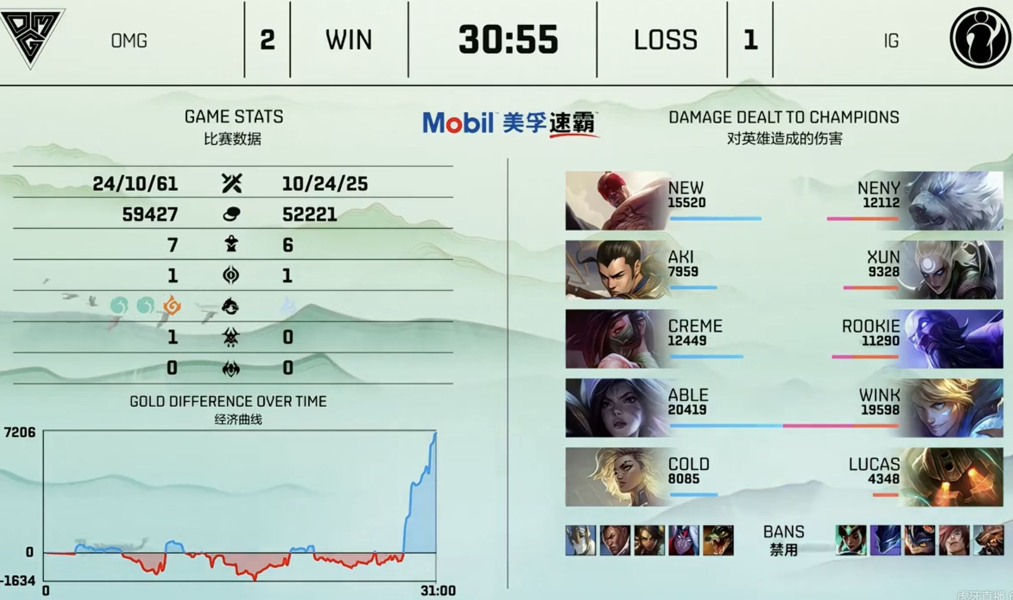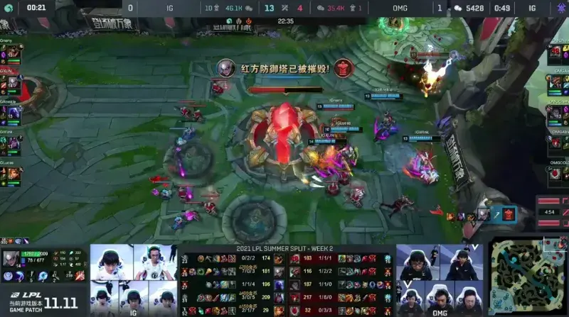 回顾本次的比赛OMG的表现可以说是相当的不错,虽说上来第一局OMG就凭借着中单Creme的优秀发挥,凭借着阿卡丽无解肥的发育成功拿下第一局比赛,但很快IG就在第二局的比赛中找回了状态,依靠打野Xun的优异表现IG成功扳回一局。