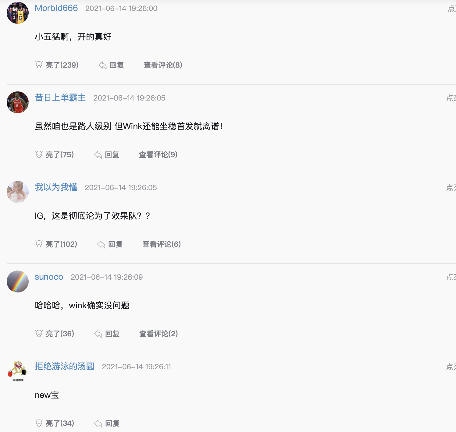 还有网友表示“先输edg,再输omg,ig不断结束记录是吧,Rookie经典开车,Wink就三流AD,Neny前天还有人说比ts强?哈哈 夏季赛这样打的话,就可以考虑明年重建了。”