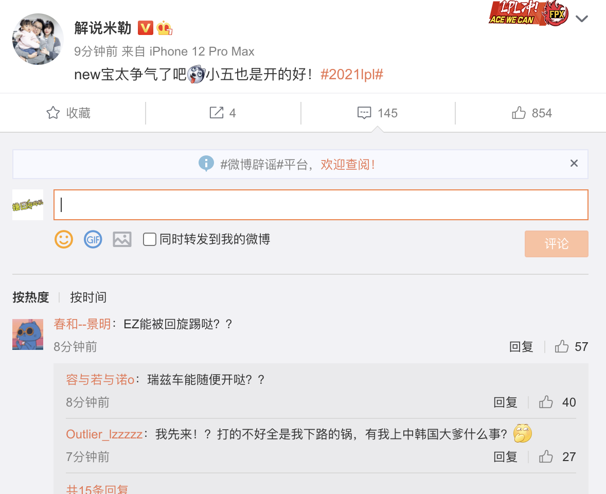 不光是网友就连LPL解说米勒在看完今天的这场比赛之后,都不禁在微博中发出感叹,米勒表示“New宝太争气了吧,小五也是开的好。”暗示今天比赛New对位表现完爆Neny,也是非常的真实了。