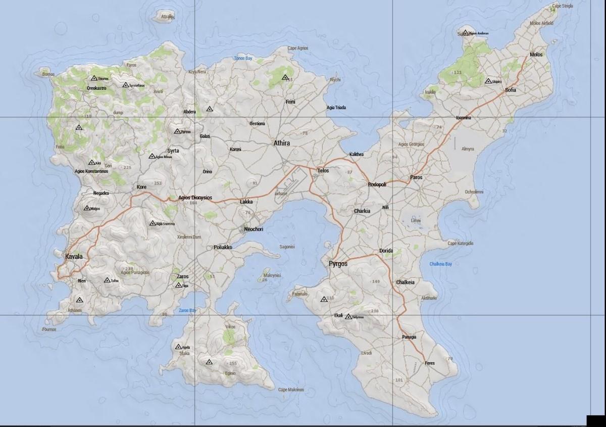 游戏里本身有自带的A岛地图,三百多平方公里。涵盖了丘陵平原等地貌,西高东低。最高点海拔400米左右,西南部为其重要区域,大部分人口,设备集中在这里。除此之外还有玩家自制的地图,其中有一张澳大利亚地图,虽然不是1/1的比例,但是2500平方公里的地图也足够震撼。
